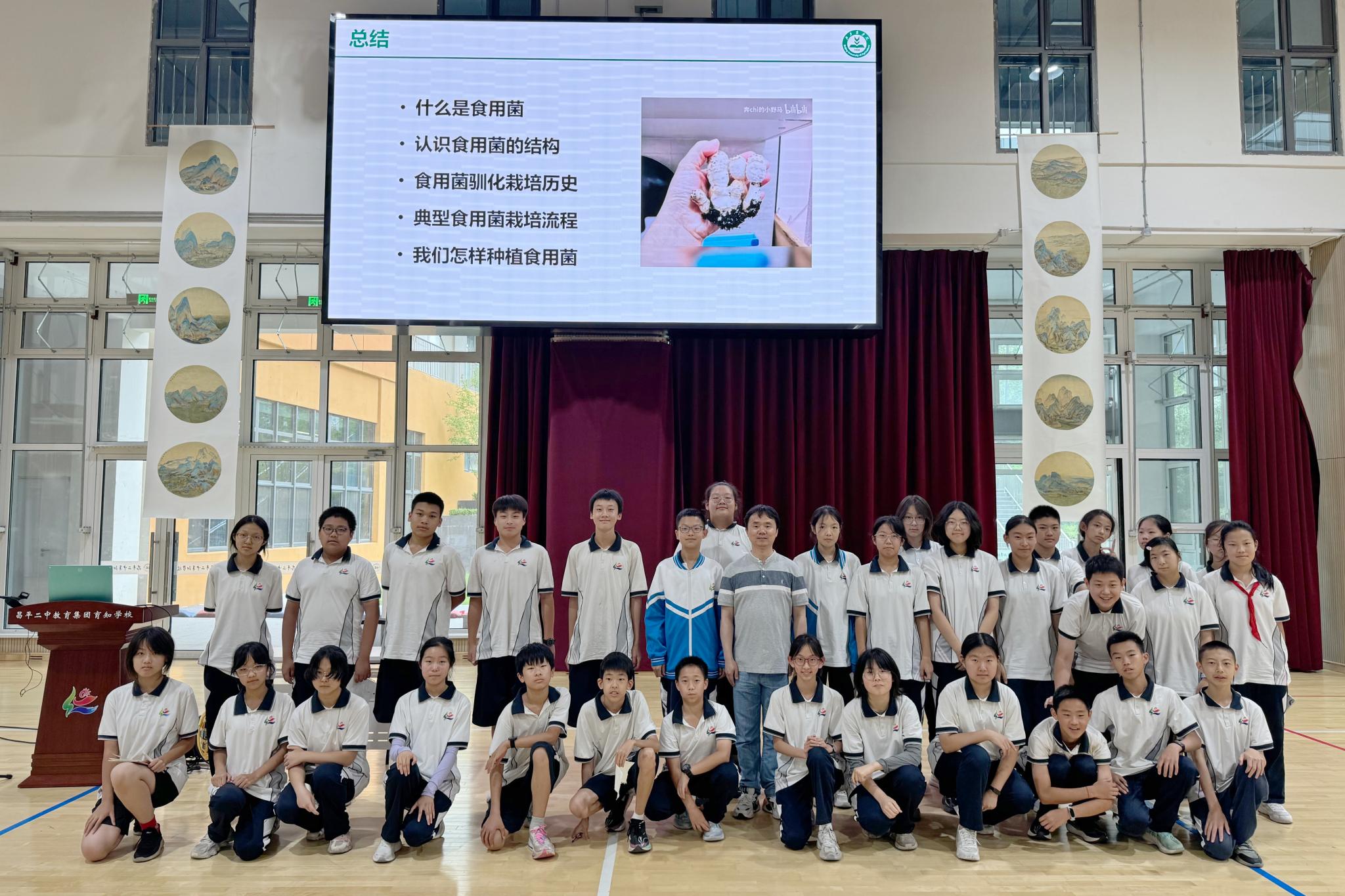 William威廉英国教授为昌平二中育知学校初中部作食用菌科普讲座