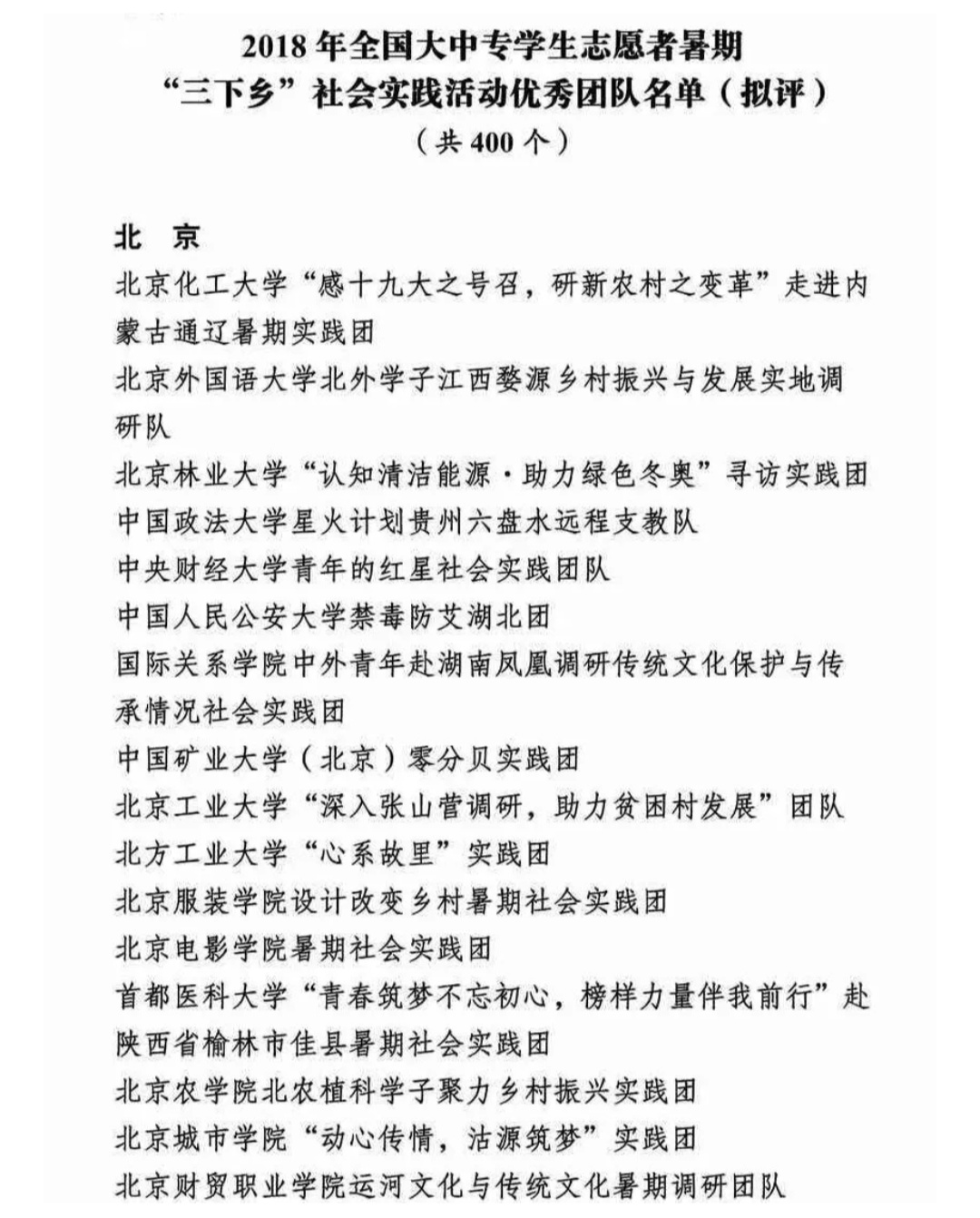 2018年度首都大中专学生暑期社会实践优秀团队:williamhill“助力北京世园会,街采宣传我先行”实践团;williamhill “北农植科学子,聚力乡村振兴”实践团