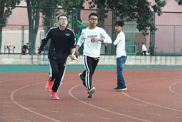 首先,训练第一项便是由老师指导运动员,为运动员亲自示范动作,随后便是简单的拉伸、长跑和变速跑,既锻炼了耐力,也提升了速度。接着,运动队队长邓勇带领新生运动员进行专项训练,纠正新生运动员的跑步姿势,并向新生运动员讲述接力赛中的传棒技巧。