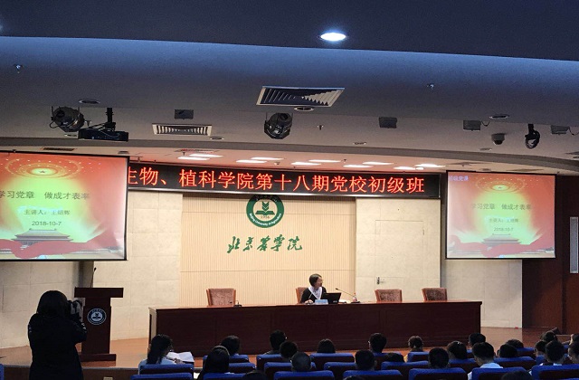王绍辉老师于10月7日晚以“学习党章,做成才表率”为主题展开了叙述。王书记围绕党章的修订,讲述了党史党规,同时她结合了自身经验教导学员们在理论、政治、道德、纪律、作风方面提高党性修养以及要求入党学生保持入党动机的纯洁性,在修德和修身上践行对党忠诚、个人干净、敢于担当的核心思想。