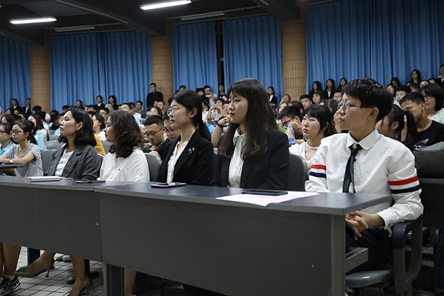 首先,学生会主席刘梦对在场人员进行介绍;接下来团委副书记朱子豪用真诚的语气激励18级的新生以梦为马,不负韶华,最后对其所在的团委进行了精细的直属部门介绍。随后由团委下属六个部门团委青协、团委组织部、团委宣传部、团委实践部、团委班联部各自的部长依次上台演讲,介绍部门工作和部门信念,并对即将加入的新干事充满期待。