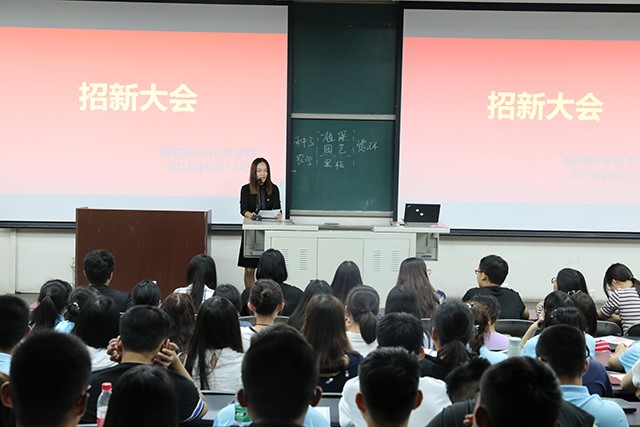 在团委招新演讲结束后,刘梦同学上台对学生会直属各部门做出介绍。在大家对各个直属部门有了初步的了解过后,由办公室、学业发展、生活部、文艺部、体育部、新闻中心文编部、新闻中心美编部各个部长逐一上台做部门介绍,招新轻松的氛围中让在座的18级新生们找到了自己将来要发展的部门。最后上台宣讲的是William威廉英国田径队、辩论队、男子女子篮球队、足球队、自助社等社团。