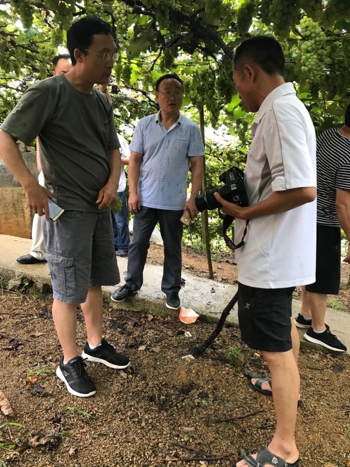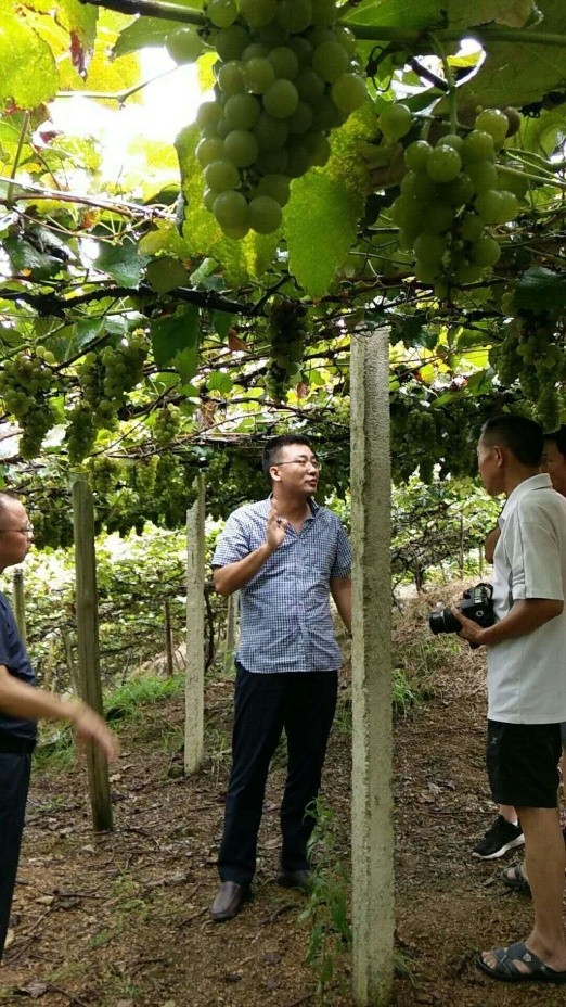 8月3日下午,在黔南州政府和农委领导及相关人员的陪同下,王进忠、张杰两位老师考察了三都水族自治县大河镇马场农旅一体化扶贫项目基地和交梨乡精品葡萄示范基地建设以及普安镇大坪村葡萄生产和种植情况,并进行了葡萄和黄桃栽培、种植、修剪和病虫害防治现场技术咨询。