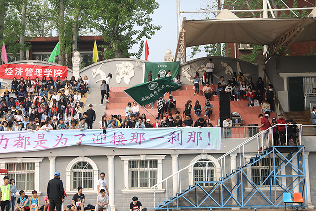 到了下午,操场上烈日炎炎,但观众人数并没有减少。敲鼓声,呐喊声盖过了裁判和主席台的声音,代表着各学院的旗帜在天空中挥舞,场面空前盛大。一天的比赛结束后,学生会人员留在观众台上打扫卫生来确保第二天的观众有一个干净的环境来观看比赛。