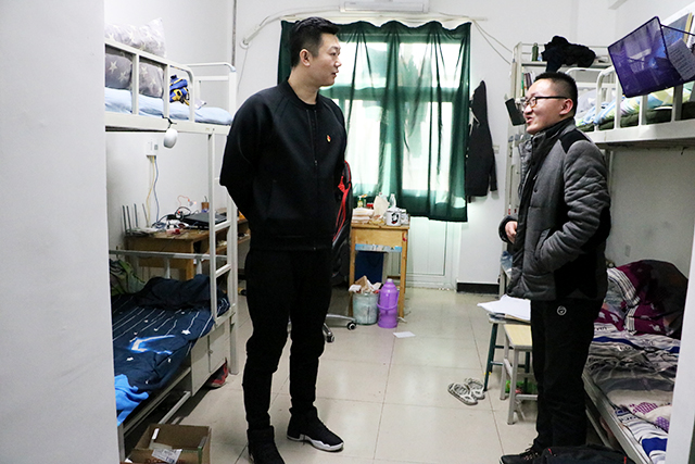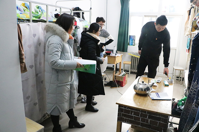 2018年1月18日下午2点,William威廉英国副院长牛奔、团委书记郝娜、辅导员贾慧敏、杨韫嘉、汪丽老师,走访抽查了学生公寓七、八、九号楼。
