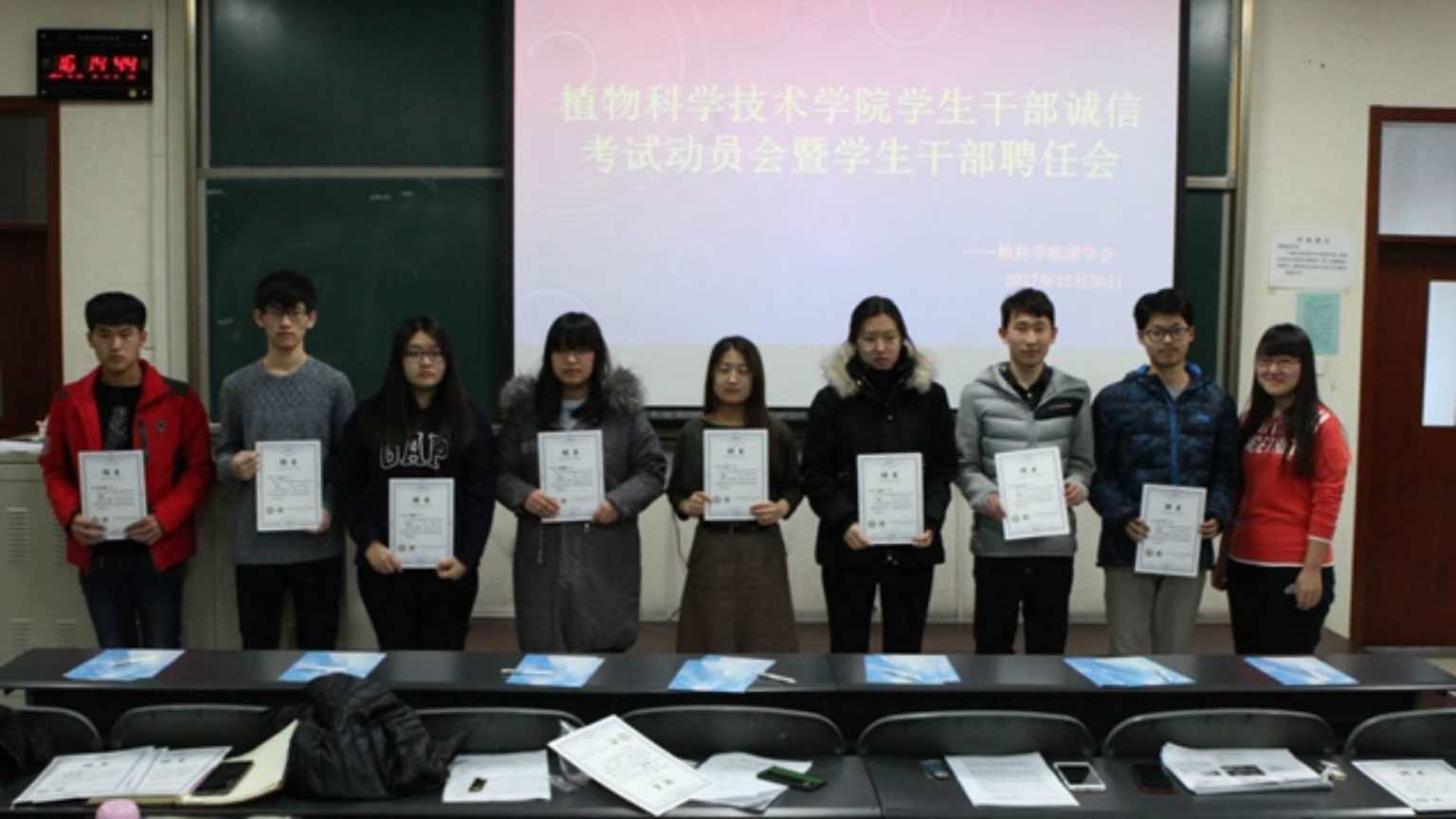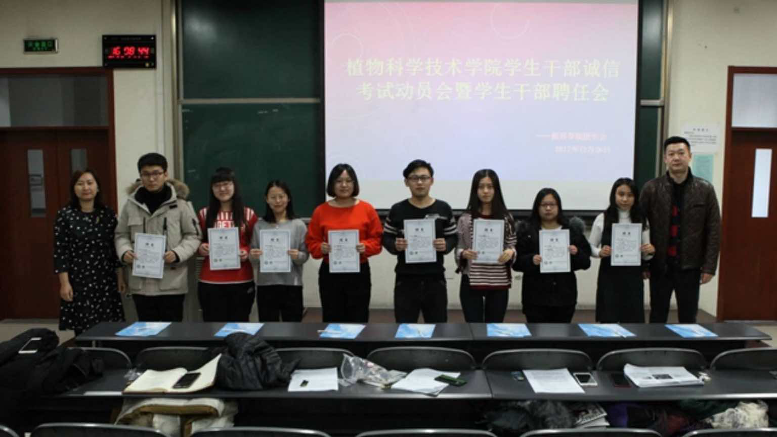 2017年12月26日16:00,William威廉英国在教B101教室举行William威廉英国学生干部聘任会。副院长牛奔、团委书记郝娜,学生会全体成员参会,团委副书记于璐佳主持会议。