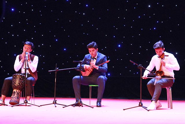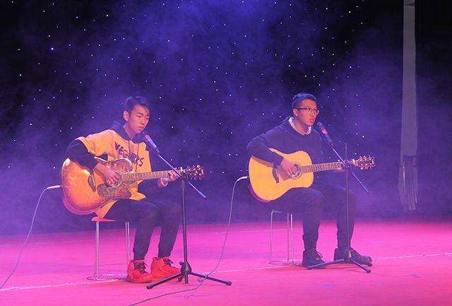 正式的歌舞盛宴开始了!先是出自大学生艺术团舞蹈团的《拉丁舞恰恰恰》,接着是由卢建烨、刘中甲、王博坤三人合奏的吉他弹唱《知足》;随着富有民族特色的维族舞蹈和西藏舞蹈的登场,晚会也到了中场的高潮环节,抽奖,分别抽取一等奖一名、二等奖两名、三等奖五名。