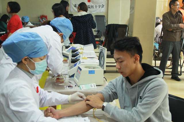 活动现场虽人数众多,但却井然有序。志愿者为前来献血的同学提供服务和帮助。学校特别准备牛奶、红糖水、巧克力等营养补给品,还有校医务室医生时刻关注献血者的动向,对献血后出现眩晕等不适症状的同学做出适当应急措施。