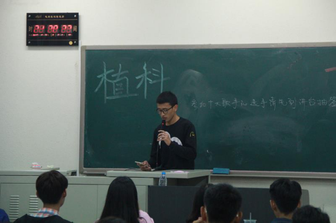 选手们通过抽签决定出场次序后,在所有人的殷殷期盼中,现文艺部部长杨雯靖宣布,此次“十大歌手”比赛,正式开始!