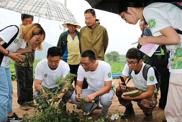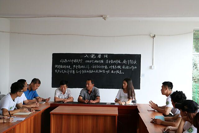 上午10点,大家到达两间房村并与当地村委会进行交流,询问当地的产业收益情况。通过交流大家了解到当地严重缺水,靠天吃饭的缺点限制了种植业的发展。村里目前正在积极地进行脱贫工作,通过产业调整的措施试种中草药材,希望收益能有所提高。同时张杰老师为当地村委会提出了一系列产业调整建议,例如,施用有机肥,建立蓄水池,滴灌等。同学们也将村委会提出的植物病害问题一一记录下来,以便回学校仔细研究解决问题。
