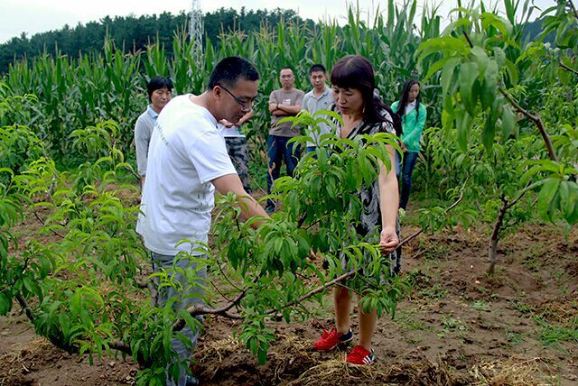 下午4点,实践团成员回到住所,随后陈青君、郝敬虹、刘超杰、赵文超四位老师特地赶来实践团,准备为当地扶贫工作提供技术指导,稍作调整后,老师们前往菜园、果园进行参观,为接下来的技术指导做准备。