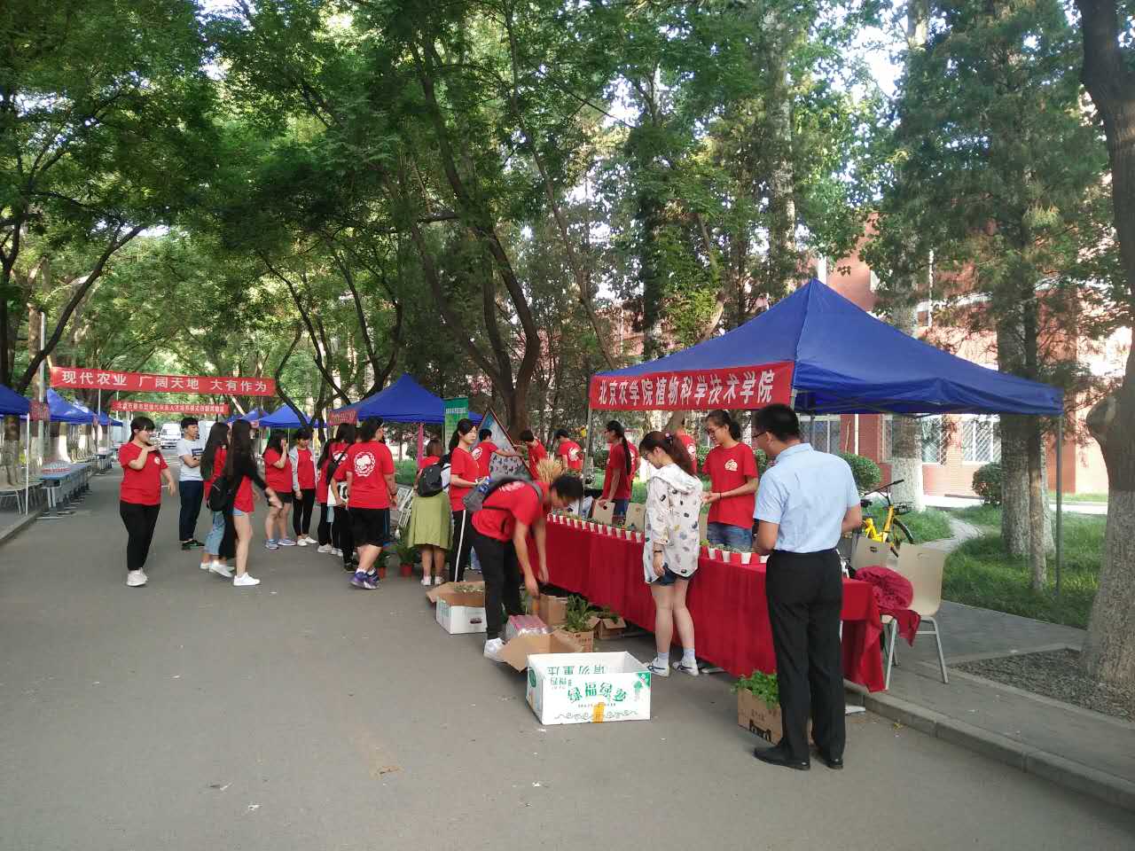 早上6:30,植科学院的学生会成员们早早到达了会场开始布置活动。同学们搬桌椅,摆物品,精神饱满的准备迎接今天的高招咨询会。