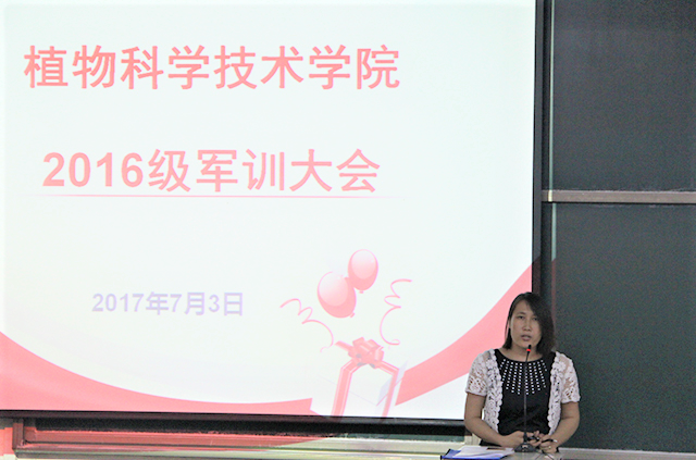 此次动员大会由闫伯前老师主持。在会议开始,闫老师为了让学生更了解军训内容及安排,播放了14级军训视频。看完视频,闫老师讲到一些军训注意事项和具体时间安排,其中她重点强调了手机问题。随后闫老师提及9号楼男生宿舍装修的相关物品安排。