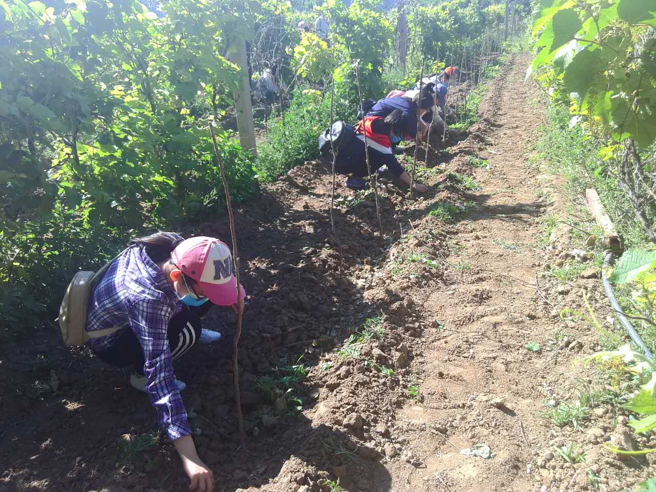 学生党员先锋工程活动开展以来,我院党员积极响应,在炎热的高温天气了,学生党员分组对科技园的葡萄园、种植园进行了绑枝、拔草、锄地等工作。大家分工井然有序,个个干劲十足,将“奉献、团结、进取、专业”的植科精神融入党员的实践活动中。