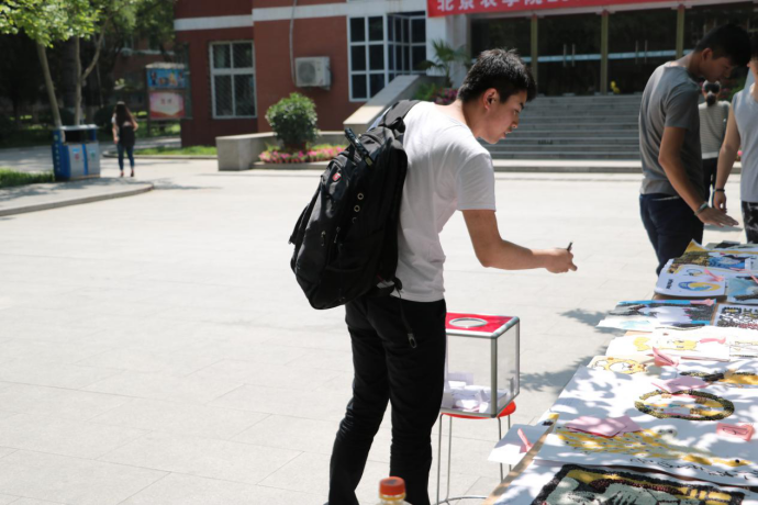 中午12点整,植科学生会的成员准时到达礼堂前组织起了投票活动。路过的同学纷纷被匠心独出的种子画吸引了目光,不少同学驻足停下为自己心目中的最佳作品投上了自己宝贵的一票。粒粒的谷物散发出认真勤恳的精神,多样的图案表现出同学们创新的品格。众多作品都赢得了投票者的青睐,优秀作品脱颖而出。但今日现场投票的票数并不是此次比赛的最终结果,后续进行的网络投票与现场投票票数总和才能决定出冠亚季之分。