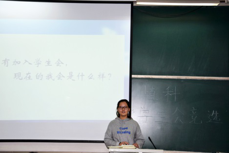 首先进行答辩竞选的职位是副部级别竞选。白云轩首先进行了述职答辩,对自己过去一年的经历进行了分享。由对接人员统一收好投票。接下来黄宗北、朱江媛、杨雯婧和生达尔进行了部长级别的答辩竞选,分别竞选办公室主任、体育部部长、文艺部部长三个职位。每次答辩结束后,学生会成员对其进行提问,大家也都认真地回答。之后所有成员进行匿名投票。