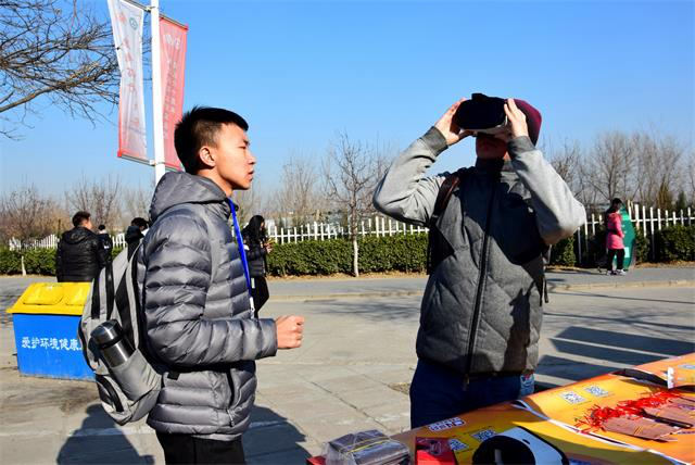 志愿者们早早就来到了宣传场地,布置宣传场地,积极宣传这次活动。活动刚一开始,就有学生前来问询。志愿者们为他们讲解了活动的主办方、目的和参与方式。同学们觉得这个活动很有意义,扫了“中国人民广播电台国家应急中心”的二维码,关注公众号,同时还得到了广播中心特意为同学们准备的包括应急自救包在内的精美礼品。还有的学生利用国家应急中心特意准备的现代科技——VR眼镜观看了应急自救宣传片。这不仅让学生体验了高科技产品,更让学生以寓教于乐的方式学到了应急自救知识。