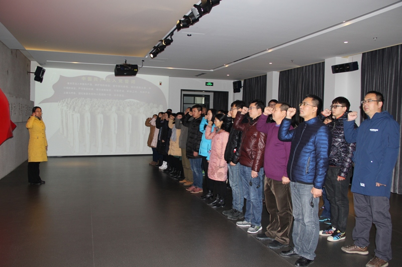 最后,王绍辉同志带领全体党员进行入党宣誓,党员们面对党旗重温入党誓词,面对党旗,对党庄严的承诺。