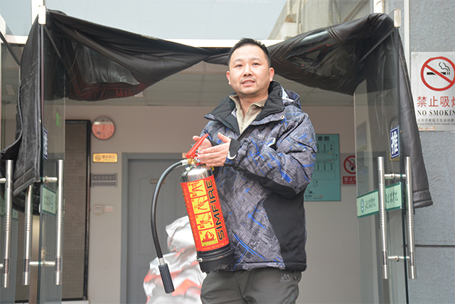 在逃生演练之后,李老师又为全体植科教师和学生干部进行了干粉灭火器的使用教学及示范。李老师用模拟火灾装置生动形象地介绍了灭火器的使用方法和注意事项,并在最后让每一位老师和同学都体验了如何快速正确使用灭火器扑灭火苗,并牢牢记住了灭火器的正确使用方法。