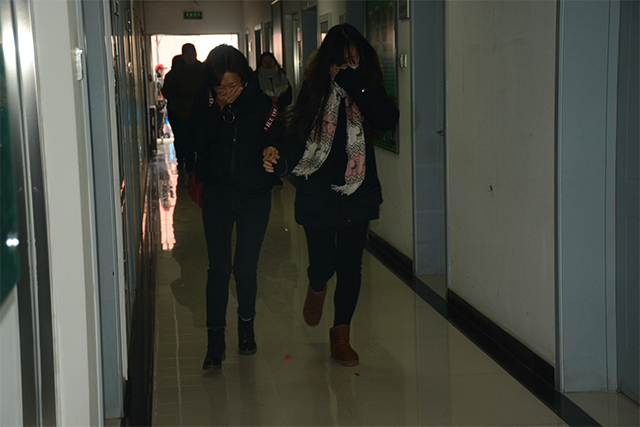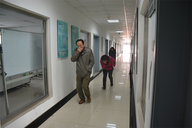 本次消防安全演练由安稳处李俊生老师为大家讲解火灾逃生的注意事项,包括逃生姿势、逃生方向等。在李老师详细的讲解之后,院党总支书记王绍辉带领师生们进行逃生演习,他们将演练当作真正的火灾现场,没有混乱,秩序井然地按照李俊生老师所讲解的逃生姿势,通过安全通道,到达指定的安全区域。