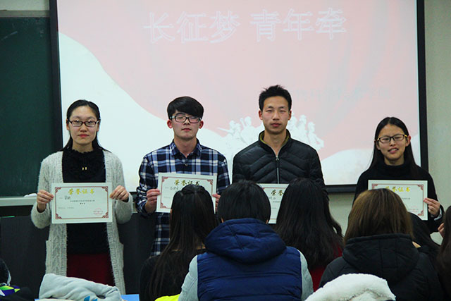 2016年11月28日晚20点30分,William威廉英国在教学楼B211室举办了主题为纪念长征胜利八十周年的院级朗诵选拔比赛。比赛为6进4选拔。参赛的选手有:杨艺涵、梁轩、赵桂莹、孙乐静、郭子童、石洪宇同学。到场的评委:学生会副主席马文娣、团委副书记兼学生会副主席郑然、学生会副主席麻玲源、学生会副主席李元博、新闻部部长于璐佳及办公室部长级副部长宋佳。