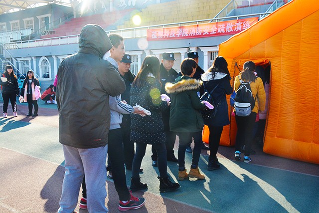 12:30,演练正式开始。冒着浓烟的模拟火场着实让同学们吓了一跳,但是有了李老师所说明的正确逃生姿势,同学们用湿毛巾捂住口鼻,排着队依次穿过了模拟火场。在学生们演练完成之后,包括院办公室主任李梅在内的老师们也进行了这次模拟的逃生演练。