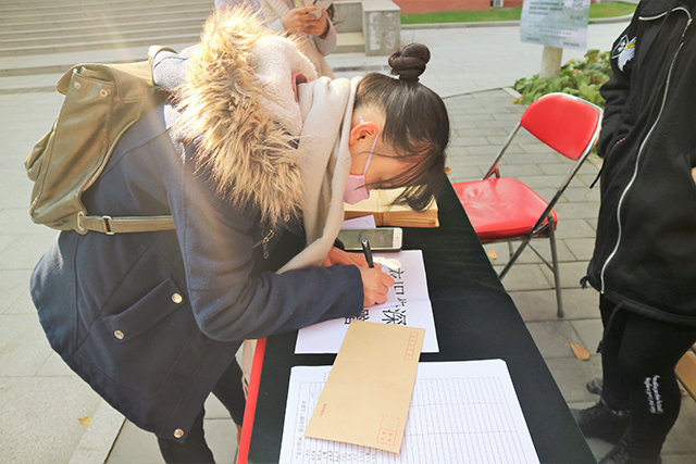 云中谁寄锦书来,雁字回时,月满西楼。本次活动旨在引导大学生怀着一颗感恩的心体悟真情、回报社会,大家热情加入到关爱、孝敬母亲的行列中,抒发质朴情怀,传承华夏美德,展现了当代大学生心灵和智慧的双重美。感恩寄信是植科感恩文化节系列活动中同学们参与度较高,现场气氛活跃的一项感恩活动,请继续关注感恩文化节活动的后续内容。