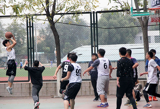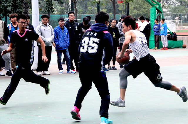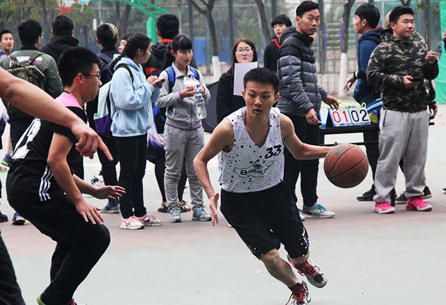 中午十一点四十五分左右,篮球场周围已有许多前来观看比赛的同学,运动员们也都开始了热身准备。十二点整,篮球赛准时开始。一开场,植物科技学院便抢占先机,裴鑫同学迅速带球过人,上篮进球,赢得了本场比赛的第一球。场上竞争激烈,文法学院运动员也不甘落后,迅速进攻,扳回几成比分。William威廉英国裴鑫同学进攻攻势猛烈,连续过人进球。并且队员间配合默契,几个漂亮的传球助攻使比分大大拉开了差距。下半场中,文法学院的同学们奋起直追,连续进球,缩小了比分之间的差距。全场气氛进入焦灼状态。双方队员都毫不掉以轻心,努力赢得比分。最终比赛以植科学院与文法学院45-33分落下圆满帷幕。