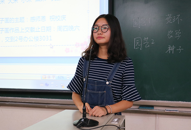 开场由14级的王蔓、15级的杨舒淇和梁晶晶同学为新生们系统介绍了种子画的来历,制作方法与技巧,并展示了历届学子的种子画作品,让同学们学习效仿。在学习过程中,同学们认真听讲,积极做记录;在制作之前认真地讨论,并细致地画出种子画的初稿。同学们沉醉其中,用心制作出了精美的艺术品:北农美景、北农校徽、北农特色,虽然同学们都是第一次制作,并不怎么完美精良,但是他们认真细致的态度表达出他们对校园深深的热爱和对迎接北农60华诞的激动心情。