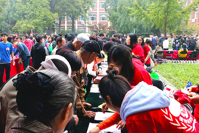 校友们看到学校的变化与发展,骄傲与欣慰的感情从眼神中流露出来。为了庆祝这个重要的日子,校友们争相为学校贡献自己的一份力量。捐赠字画、玫瑰花、现金、家乡特产等等。不得不提的还有捐赠处一个感人的场景,“我老伴也是咱们学校毕业的,但是他已经不在了。这是他生前写的回忆录,里面有一些对中国农业情况的总结和想法,对学校可能有用,我现在把它送给学校。”还有的校友分享了他们读书时候拍下来的珍贵照片,捐赠处盛况空前。