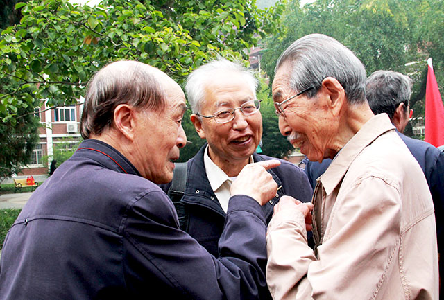 六十年砥砺,六十年风雨,今日高朋满座,群贤毕至。早晨7:30,就已经有校友怀揣着激动难耐的心情陆陆续续地来到签到地点。他们中有的正值壮年,有的已经满头白发,时光匆匆,几十年过去了,聚在今天,他们那一双双充满了北农记忆的手,在签到册上,写下了他们值得纪念的名字。沧桑的脸早已没有年轻时的痕迹,但他们还是在眉眼中认出了对方。“哟!这不是我们班的吗!”“你还是和当年一样,神采奕奕。”校友们在签到处纷纷认出了自己的同学,握手、唏嘘、回忆。教B门前尽是一片温馨暖意。有一位行动不便的老校友,坐在轮椅上,签到之后在志愿者的帮助下进入了教学楼,怀着期待寻找着当年的同班同学。