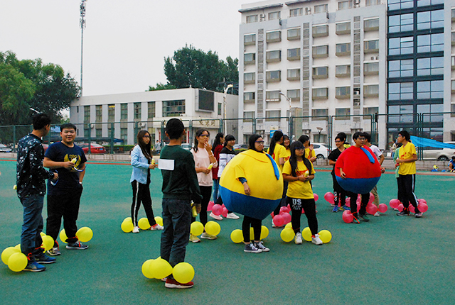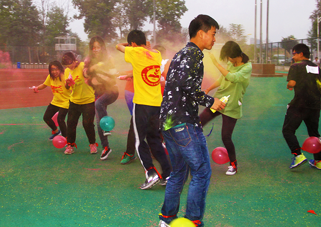 在本次活动中,学生会全体成员共分成四组,开展了一次名牌保卫战。四个小组的队员们分别在脚踝处绑定不同颜色的气球,在激烈的撕名牌与踩气球活动后,第一组剩余的名牌数和气球数最多,取得了最终胜利,其余组则接受了被喷洒彩虹粉的终极惩罚。本次活动中,在大家玩的不亦乐乎的同时,学生会的小伙伴们之间都建立了非常深厚的友谊,成员间的团队协作意识也有很大程度的提高。