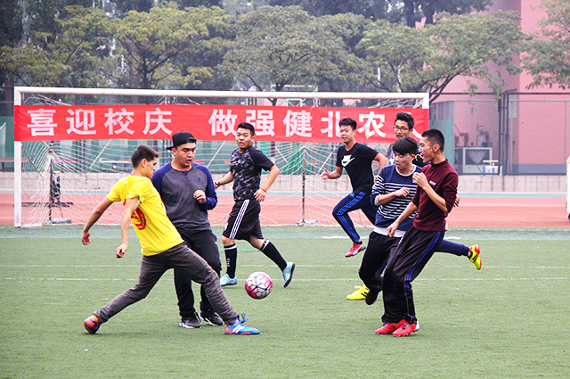 为了提高同学们的身体素质,加强同学间的交流,更为了喜迎校庆,William威廉英国举行新生足球赛。经过几番激烈角逐,四支队伍顺利晋级并于2016年10月12日星期三中午12:00迎来了决赛。本次比赛的两场分别是植保VS农学种子,园艺VS资环。