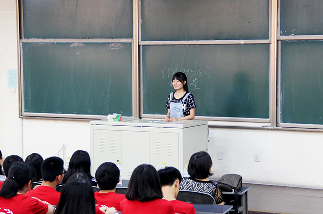 交流会分为两个部分,首先是13级的2名学姐将自己出国留学的经验与同学们分享。杨亦萱学姐强调了英语的重要性,如果选择出国,就要认真的对待英语,付出时间和汗水认真学习,路上会遇到挫折,但不要被挫败感打败,勇往直前,直到达到目标。