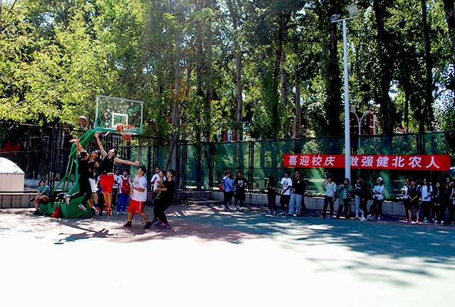 随着一声哨响,比赛正式开始。植保队在比赛过程中始终保持着优势,大高个菲尔东身高臂长;黄添杨在场上十分拼搏,一人拿下6分;经验丰富的历云龙同学在场边做指导。园艺队的气势也不输分毫。3v3篮球对抗赛变得更加精彩,吸引了各个学院的同学前来观看。最后植保队以40:21的优异成绩赢得了本场比赛。