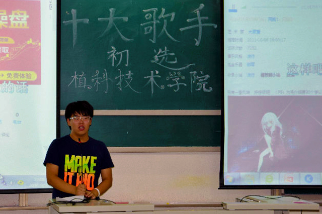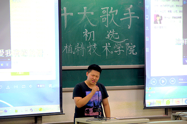 初选正式开始前,去年十大歌手第一名李云洁的一首《万物生》引爆全场气氛,初选正式开始,选手们一一上台演唱自己的曲目,一位来自新疆的同学演唱的《贝加尔湖畔》将全场带入轻松舒缓的氛围,紧接着来自农学的同学演唱的《一千年以后》将全场的气氛渲染到了高潮,同样来自农学的一位同学演唱的一首《龙卷风》也毫不逊色。比赛就这样紧张而激烈的进行着,植科的同学真是卧虎藏龙啊。最后,研一同学刘宏润的一首反串歌曲,惊艳全场,他唱的十分投入,让人不得不陷入其中,给评委和同学们留下了深刻的印象。随着最后一首歌曲的结束,植科十大歌手第一场初选告一段落。