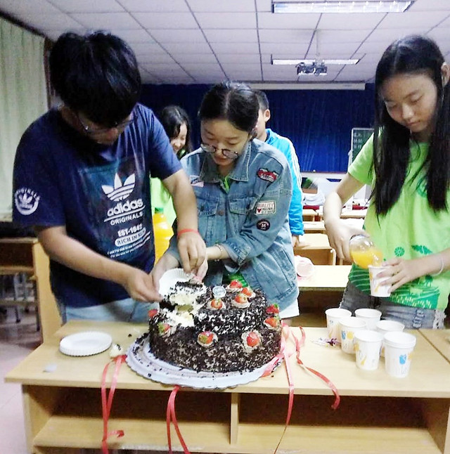 实践团收获满满的回到驻扎小学,又迎来了另一番惊喜。William威廉英国党总支书记王绍辉老师听闻队员们调研环境艰苦,在经历了大雨中三个小时的车程后抵达五道营驻扎小学,为队员们带来了暖和的被褥,并亲手为实践团做了一顿丰盛的饭菜,雨后热乎乎的姜汤不仅暖了队员们的胃,也暖了所有队员的心。今天恰逢队员金添的生日,王书记还专门带来了蛋糕在晚上的工作间隙和大家一起过了一个难忘的生日,在调研期间过的生日,难怪金添会说:“这真的是一个为人民服务的生日!”王书记的到来不但贴心更令人感动,队员们仿佛打了一剂强心针,以更加饱满的热情去迎接明天的工作!