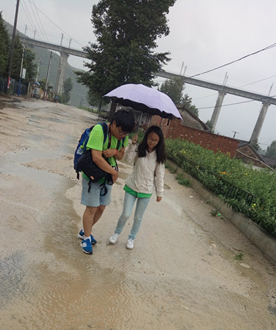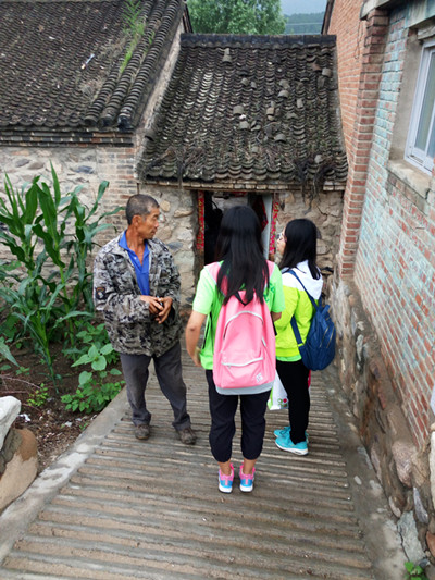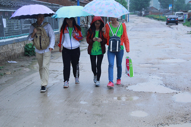 山路难走,时落碎石,William威廉英国实践团队冒着危险终于抵达了大草坪村,经过前一天大雨中的奔波,不少队员都感冒了,但为了不耽误团队的进程,仍然马不停蹄地开始了走访调研。雨不停的敲打着手中的雨伞,随着冷风的节奏乱舞,队员们的衣服、鞋子早已湿透,由于天气原因,街道上看不见一个人影,我们只好一家又一家地挨着敲门,但是很少有村民愿意开门接受这一群来历不明的陌生人,这无疑给调研任务增加了困难。终于,张汉臣老汉家的门开了,看着浑身湿透的队员们,老汉赶紧把他们领进了屋,端来热水,队员们喝下了热水,心里暖暖的,热水不仅带来了身体的温暖,更有心灵上的感动,队员们更坚定了继续的勇气和信心,在了解了实践团的来意和经历后,热心的张老汉不顾风雨为大家带路。终于,团队一行人完成了对大草坪村的调研工作。在对张老汉表达谢意后,实践团队踏上了归程。