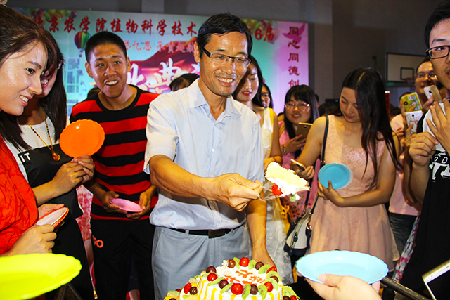 伴随联欢的进行,漂亮的毕业蛋糕被推到了会场中央。潘院长亲自操刀,为同学们切分蛋糕。很快,同学们就“包围”了院长,争相去接受院长给的“甜蜜”。