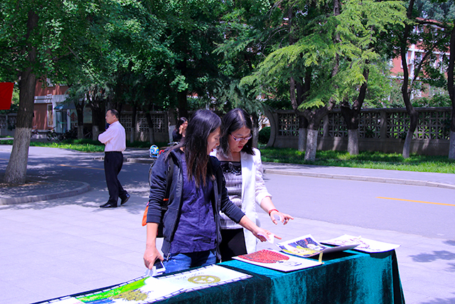 投票开始前,学生会部分干事以及辅导员郝娜早早地来到礼堂布置投票现场,搬运桌子、摆放数几十种作品、给种子画编号等准备工作。投票活动期间,干事们都热情的请过往的老师和同学们来参与投票,并认真的讲解活动内容及相关投票事项。大多数师生对摆放的种子画作品赞不绝口,更有很多在现场欣赏的老师和同学门投出自己宝贵的一票。