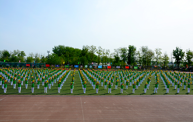 最吸引眼球的表演非校舞莫属。绿色的服装,黄色的太阳花,仿佛在诉说着,怀揣绿色希望的我们定会托起明天的太阳。伴随着充满韵律的校歌,表演者们做着整齐划一的动作,彰显北农学子精神焕发、斗志昂扬的风尚。在运动场上这片刻的美丽,是他们骄阳下训练洒下的汗水,浇灌出了名为希望的幼芽。