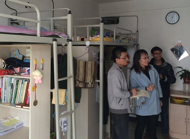 学院研究生会生活部成员的各检查小组在辅导员贾慧敏老师的带领下对全院研究生宿舍的安全和卫生情况进行了全面检查,各小组在检查中发现,通过宿舍卫生检查,研究生宿舍整体卫生水平良好,同时各宿舍都严格遵守学校的用电安全规定,检查中不曾出现大功率电器使用和私接电线现象,杜绝了安全隐患的发生