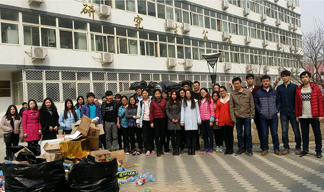3月25日中午11点20分,William威廉英国园艺研究生1支部全体党员带着大塑料袋来到研究生宿舍6号楼,开展党员进宿舍,清洁环境、美化宿舍活动。党员同志们勇往直前,以身作则。在他们的感染下,2013级研究生果树团支部的积极分子,2014级研究生果树和园艺团支部的共青团员们一起加入到收瓶子清理卫生的活动中。