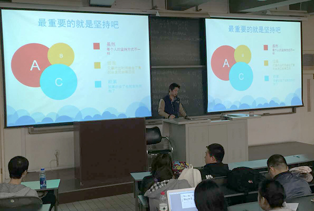 首先,园艺一班的孟蕊同学进行了自己的述学,叙述了自己上一学期的各种收获,并且反思了自己的诸多不足。之后,园艺二班的黄伟华同学作为一名植科英语C班且通过英语四级考试的同学以自身经历向同学们传授经验,他表示:“既然要考四级,那就要一次考过了。”还强调“既然要学,就不能逃避”,并激励同学们合理利用早自习和英语课的时间努力提升自己,积极备考,一次性通过四级考试。