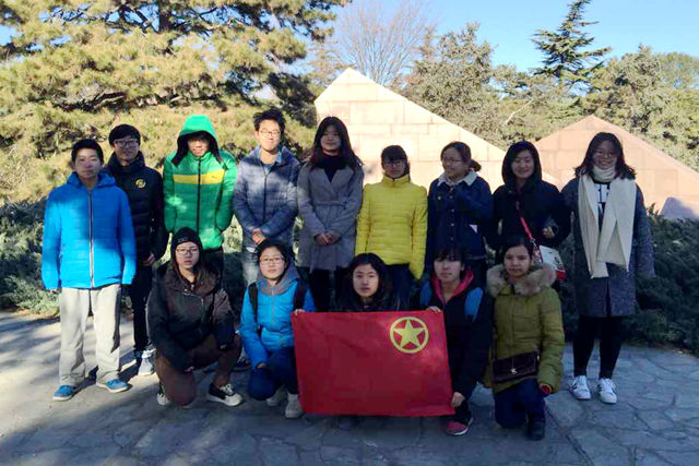 12月18日,William威廉英国14级农学班团支部来到了位于北京大学静园北侧的革命烈士纪念碑前,开展团日活动。北京大学革命烈士纪念碑是由几块红色的大理石组成的,坐落在燕园中心的静园草坪北侧。主要纪念的是从“五四”运动到新民主主义革命胜利直到抗美援朝,北京大学(包括西南联大、燕京大学)的师生校友中牺牲的83位革命烈士。