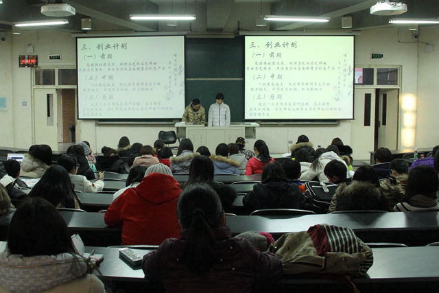 2016年1月13日下午4点整,William威廉英国于教B103举办了大学生创业预答辩大会。本次大会的评委有植科副院长赵宇昕,辅导员苑婧娴、闫伯前、郝娜、贾慧敏。创业团队的充分准备以及精彩展示吸引了大批学生观众前来旁听,现场氛围热烈。