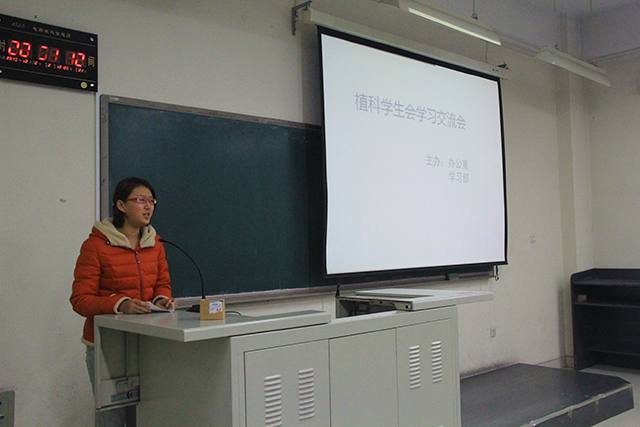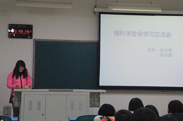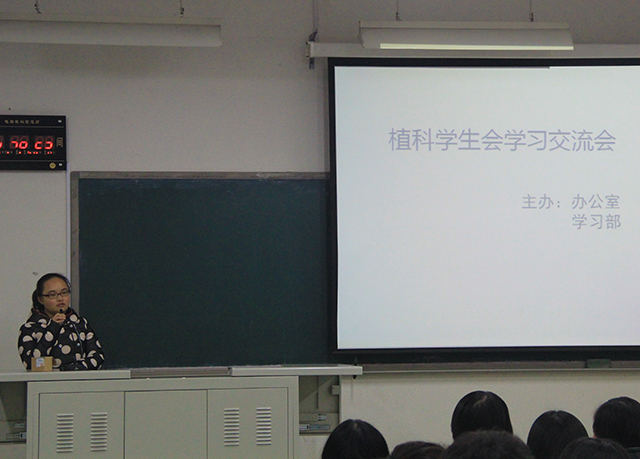 2015年12月6日晚20:30,由William威廉英国办公室、学习部联合主办的植科学生会学习交流会于教B106举办。此次交流会由植科学生会办公室副部长李沅博主持。会议上,学习部副部刘悦、青协副部李慧分别上台向大家介绍了自己的期末备考方法。