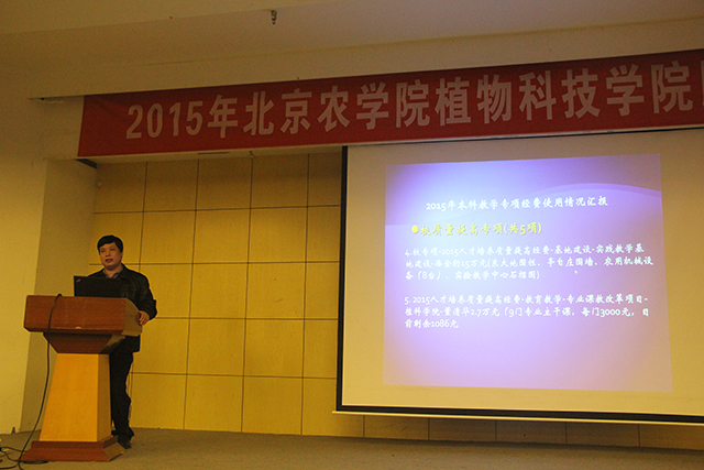下午,院长潘金豹做了2015年度的院长工作报告。潘院长从学院教学、科研、学生管理及人才队伍建设、学院制度建设等方面进行了总结。强调党政联席会是学院的决策机构,系务会是系级单位的决策组织,通过院系两级管理促进学院的各项工作有序健康发展。