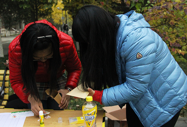 植科学生会成员为同学们准备了以北农校园风光为背景的精美明信片、信纸、信封以及邮票。据统计,此次活动总共收到信件411件,其中明信片380份、信件31封。