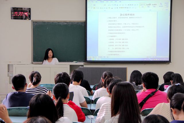 办公室部长黄艳红首先开始发言,向新生们介绍了办公软件的使用方法,交代了表格制作文案编辑的要求和站内邮件编写格式,接着,新闻部部长连兴业又对新生们进行了新闻写作培训,向各位同学提出了新闻写作的几点要求。培训中大家都认真倾听,有些同学还不忘及时拍照、记录、用U盘拷走讲解材料。最后,为进一步了解新生干部,学生会向新生干部布置了考核任务,希望我院新生干部能够通过考核出色地展现出自己的能力。